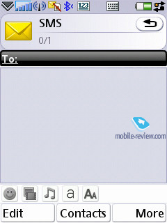 Opciju za kreiranje nove poruke možete pozvati iz svakog menija, koji karakteriše broj telefona – samo je potrebno da odaberete tip poruke (SMS/MMS) i započinjete unos teksta. Pod odeljkom SMS poruka nalaze se i EMS poruke. Činjenica je da od korisnika ne zavisi koju vrstu poruke kreira. Ukoliko unosi samo tekst, telefon će ovu poruku prepoznati kao SMS, dok ukoliko uz tekst korisnik doda i koju ikonu sa osmehom, melodiju, sliku ili formatizovan tekst onda će u pitanju biti EMS poruka. Ovaj standard je u potpunosti podržan od strane telefona što je i bilo za očekivati.