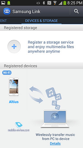 S Beam. Reč je o tehnologiji koja omogućava da se za nekoliko minuta izvrši transfer fajla sa jedan na drugi uređaj pri čemu reč može da bude o fajlovima veličine nekoliko GB. U suštini, mogli smo da vidimo da je S Beam kombinacija dve tehnologije NFC i WiFi Direct. Prva tehnologija je korišćena da bi mogla da se izvrši autorizacija između uređaja, dok je druga korišćena za sam transfer fajlova. Ovaj kreativni način za korišćenje WiFi Direct karakteristike je mnogo lakši da se poveu dva ure]aja, odaberu fajlovi i ostalo.