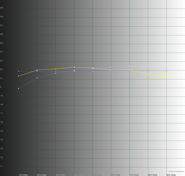 Ukupno: odličan kvalitet matrice sa lepim bojama; uređaj je pokazao da pri minimalnoj osvetljenosti ekran dobija plavu nijansu, a pri maksimalnoj osvetljenosti boje su tople, zasićene i prevazilaze sRGB trougao, siva boja je neprirodna.