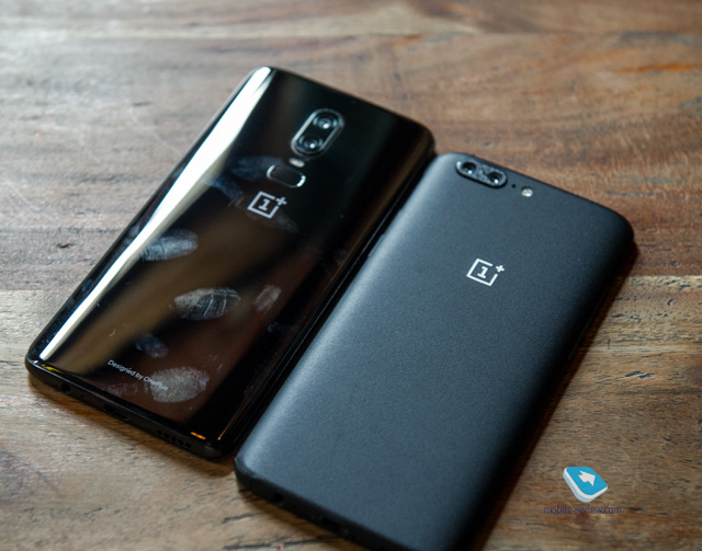Ispod skenera je OnePlus logo, a u dnu - jedinstveni i inovativni natpis "Designed by OnePlus". U pogledu veličine, uređaj je zadržao dimenzije OnePlusa 5 modela, razlike u ovom aspektu su minimalne. Fotografija prikazuje odnos veličina dva uređaja. Obratite pažnju na razliku u veličini ekrana.