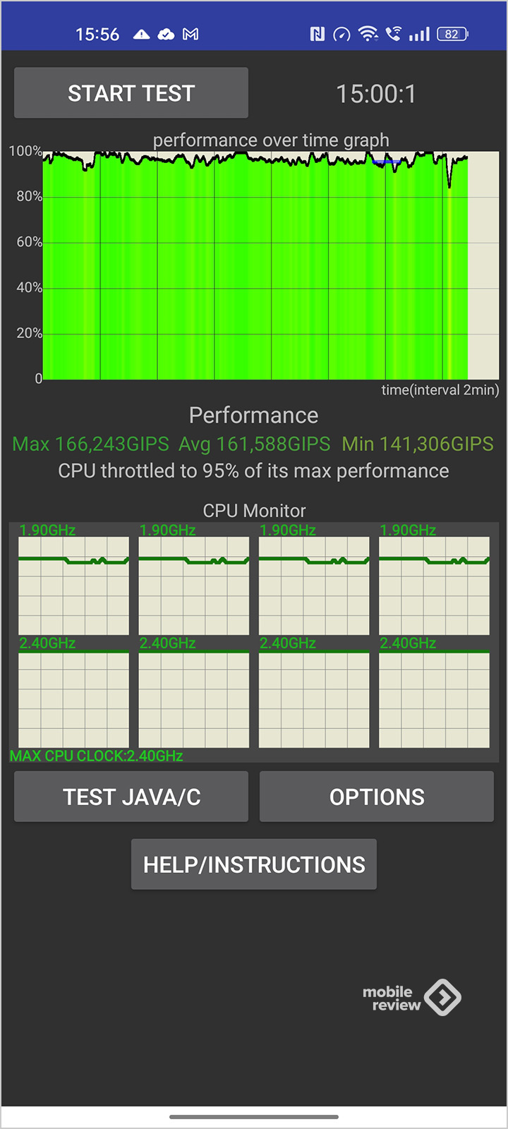 U PCMark testu pametni telefon je takođe pokazao dobar rezultat – 9 sati. Ekran je podešen na maksimalnu osvetljenost u ručnom režimu (450 nita), uključen je Wi-Fi, mobilne komunikacije.